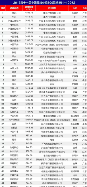 中国品牌价值500强榜单由中国品牌研究院和广东工业大学品牌观察研究院发布,涵盖了品牌价值评估最核心的几个重要考评指标,包括年营业收入、营业利润、行业属性、行业地位、品牌历史等。此次500个上榜中国品牌总价值高达174627亿元,平均每个上榜品牌的价值为349亿元。按区域划分,北京、广东均有100家企业入围位列前两位,上海、浙江、江苏、山东、福建紧随其后。